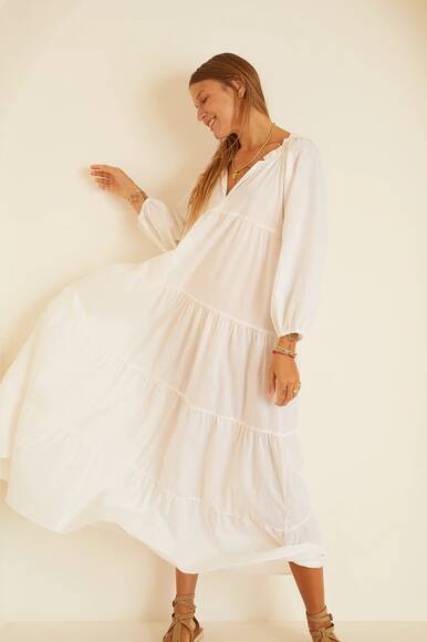 Maxi Kleid Rose in Weisser Baumwolle