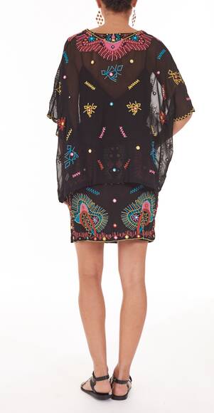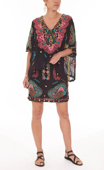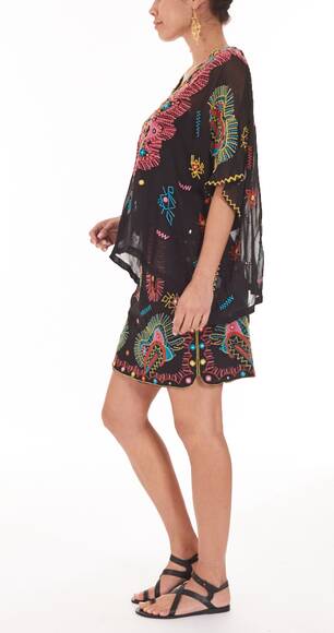 Schön besticktes Kaftan-Top von Antik Batik. Kurz geschnitten mit Unterkleid, lässiges Tragegefühl.