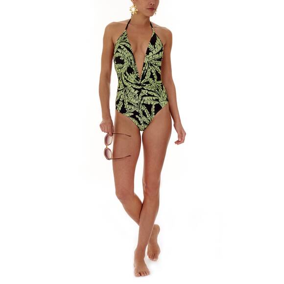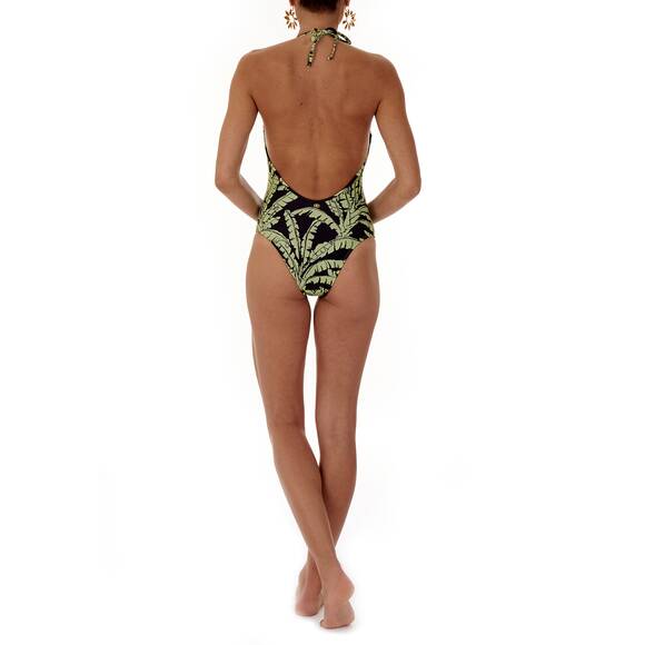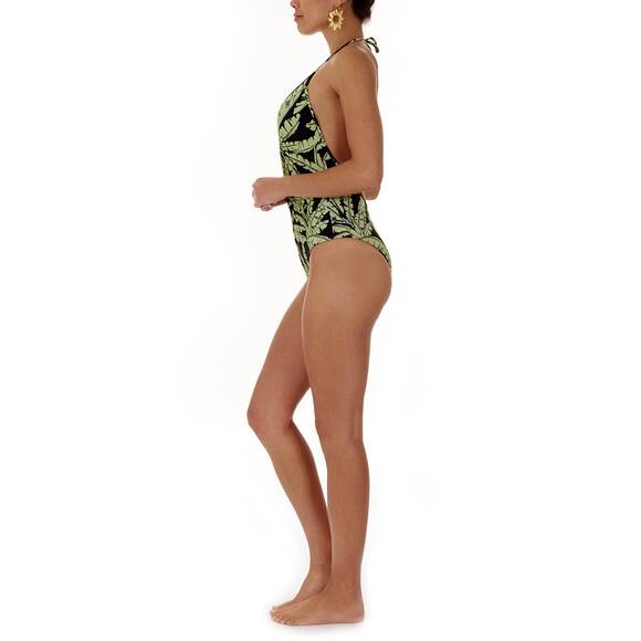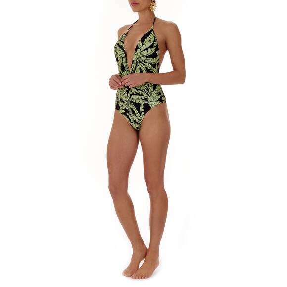 Schwarzer Badezug von Adriana Degreas. Mit Blättermotiven.