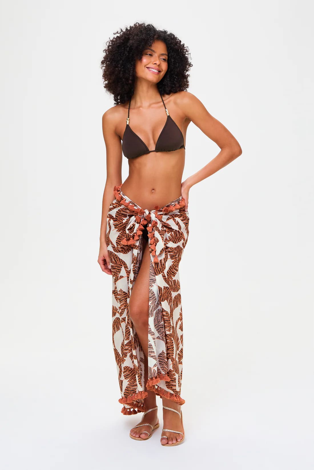 Der Little Compton Sarong ist aus einem hochwertigen Seiden-Baumwoll-Gewebe mit einem auffälligen Blattmuster gefertigt. Er ist multifunktional und kann sowohl um die Taille als auch um den Hals getragen werden und bietet so unterschiedliche Bedeckungsgrade. Kombinieren Sie ihn mit unseren ergänzenden Coco Palm Bikinis und Badeanzügen für den kompletten Urlaubslook.