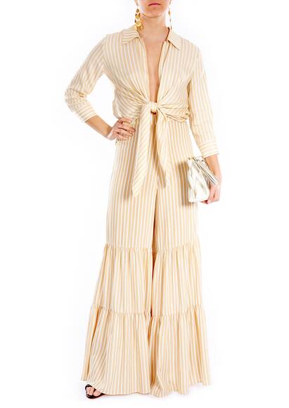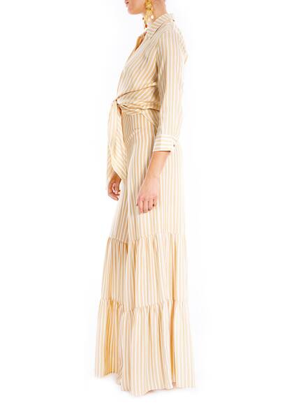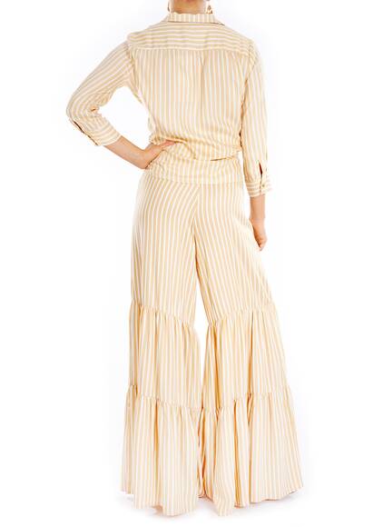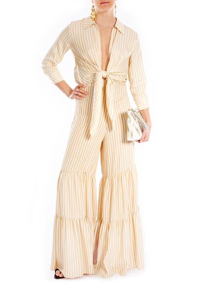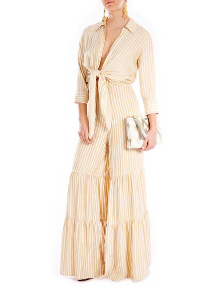 Die weite gestreifte Hose im elegant coolen 70'er Style ist von den Tropicalia inspiriert. Tragen sie die Hose mit unserem passenden Oberteil von Adriana Degreas.