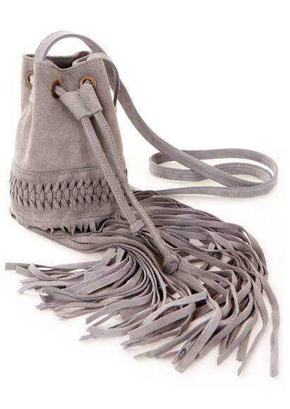 Die handgeflochtene Ledertasche im Hippie-Style aus grauem Velourleder ist ein absolutes Statement-Piece. Mit ihren langen Fransen, die locker über die Tasche fallen, verleiht sie jedem Outfit einen lässigen, boho-inspirierten Charme. Das weiche Velourleder sorgt für ein luxuriöses Gefühl, während die kunstvolle Flechtarbeit das handgefertigte Design unterstreicht. Ideal für den Alltag oder als besonderes Accessoire für Festivals – diese Tasche kombiniert Stil und Funktionalität und ist ein perfektes Highlight für modebewusste Individualisten.
