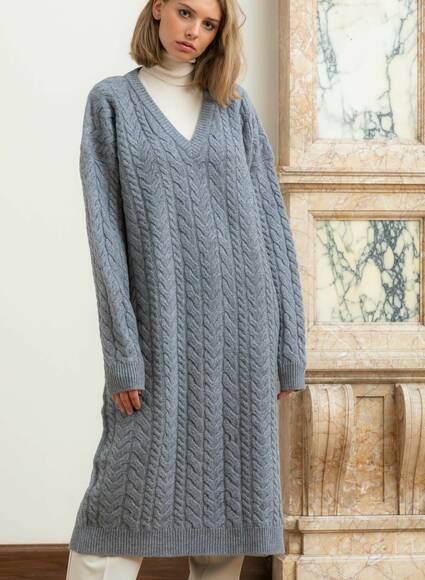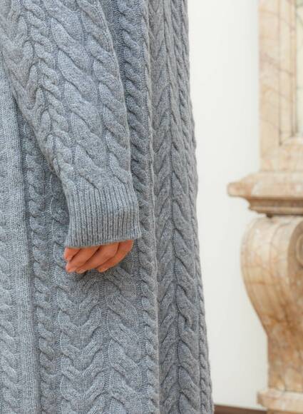 Kaschmir-Woll-Kleid im Zopfmuster, grau