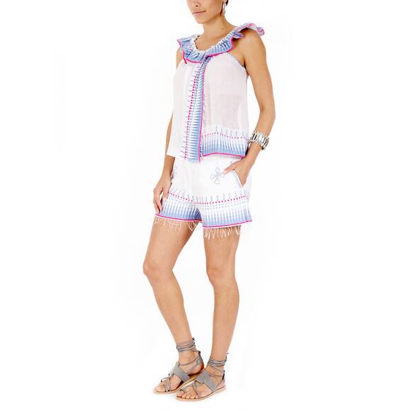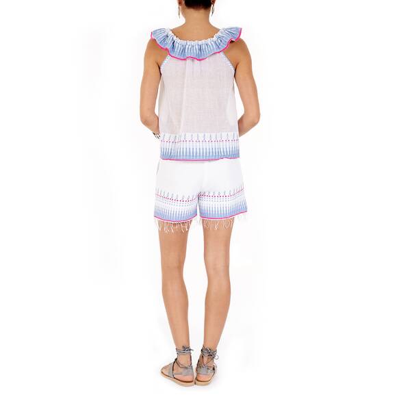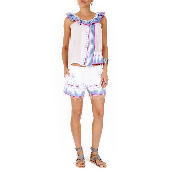 Weiß-transparentes Top mit verschiedenen Verzierungen von LemLem.