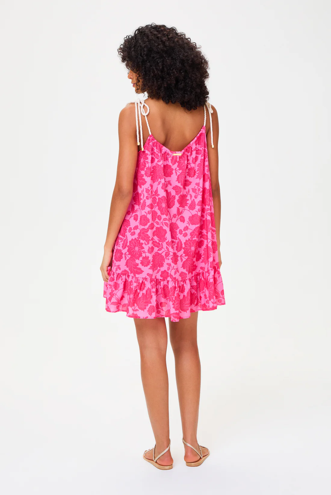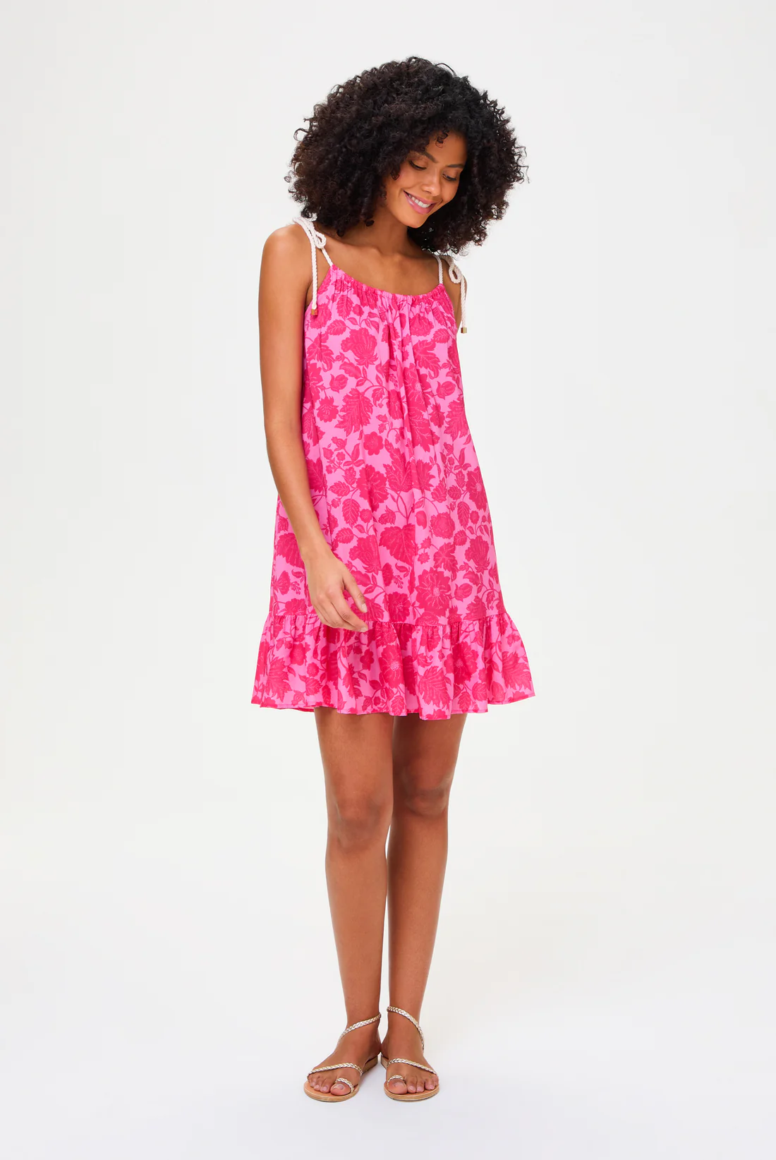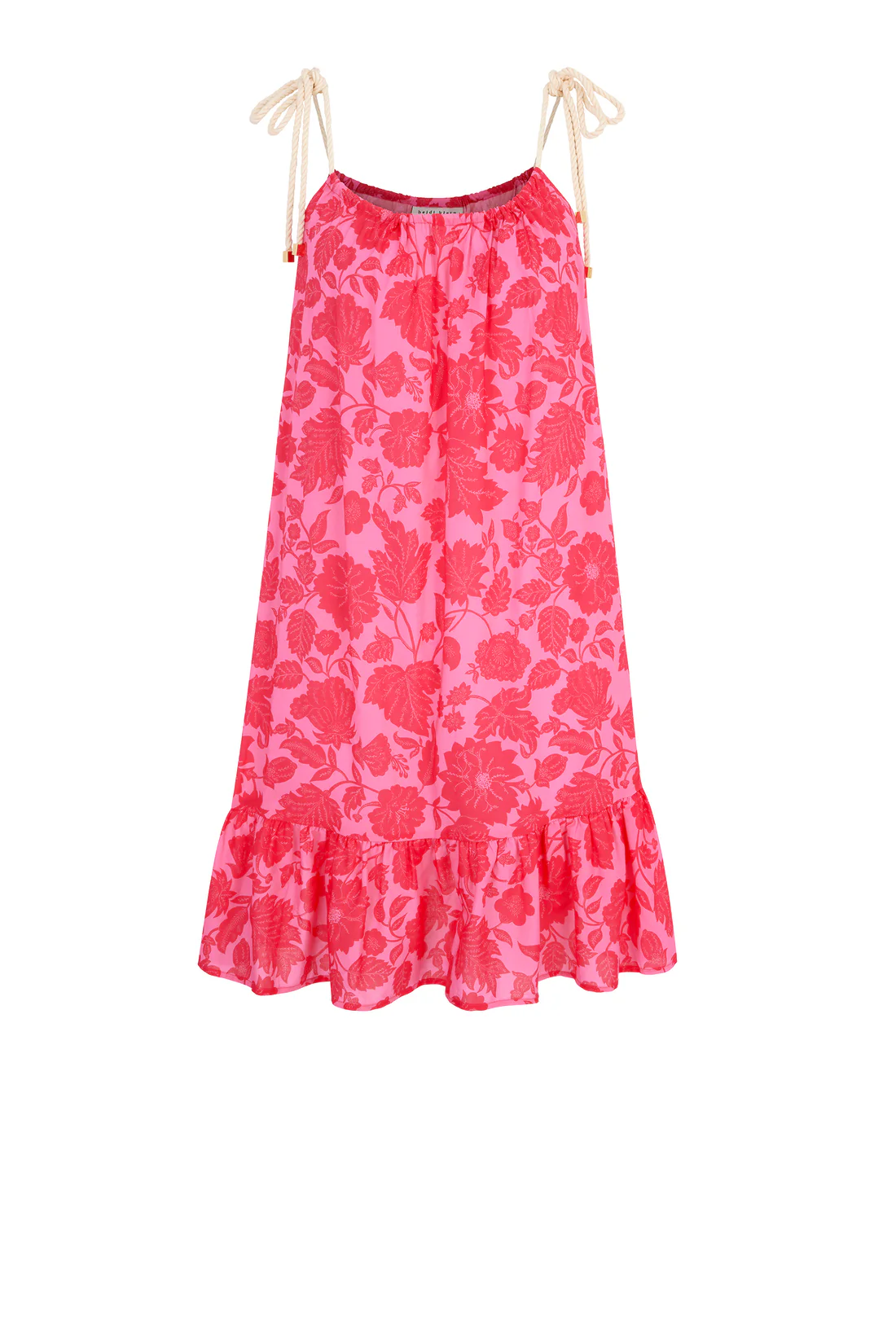 Unser Fairhaven Minikleid mit Bindeschulter und erfrischenden rosa Blumendruck ist in einer lockeren Passform geschnitten, die sich im Sommer leicht tragen lässt.