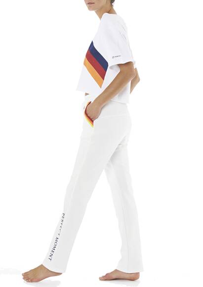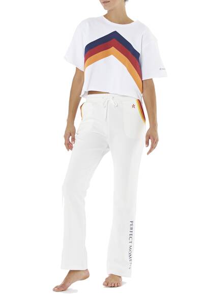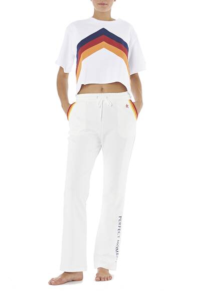 Das Chevron Sweat-Tee ist ein lässiges, aber auch ein Statement-Shirt mit seinen orange, rot, navy Winkelmuster am Arm. Das weiße Sweatshirt hat einen raw-edge Saum am Ausschnitt, kurze Ärmel. Das Perfect Moment Logo ist auf dem Ärmel gedruckt.