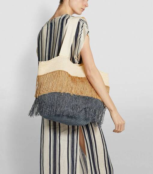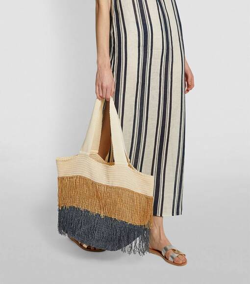 Die Fransen-Tasche im Hippie-Stil von Sophie Anderson ist ein perfekter Begleiter für den Strand und die Stadt. Mit ihrem lässigen Boho-Chic und den fransigen Details bringt sie das richtige Maß an Stil und Freiheit in deinen Look. Das geräumige Design in erdigen Natur-Tönen bietet ausreichend Platz für deine Essentials, während das weiche Material die Tasche angenehm tragbar macht. Besonders praktisch: Sie lässt sich leicht im Koffer verstauen und ist ideal für unterwegs – ein vielseitiges Accessoire für Sommerausflüge, das sowohl funktional als auch modisch ist.