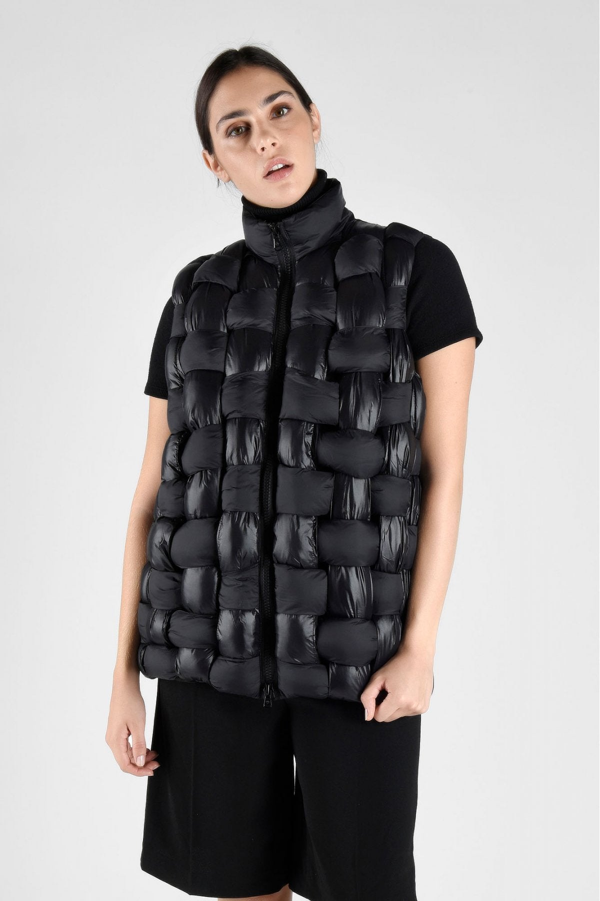 Es wird keine Entschuldigungen mehr geben, nicht aufzustehen und die Wärme der Zudecke zu verlassen, denn mit dieser langen Weste werden Sie sich mehr denn je geschützt und verwöhnt fühlen. Sie besteht zu 100 % aus Nylon und hat eine weiche Polyesterwattierung, die sie leicht und atmungsaktiv macht, und das Fehlen von Ärmeln sorgt für mehr Bewegungsfreiheit. Aufgrund seiner Länge empfiehlt es sich, es über einem Herrenanzug zu tragen, oder, wenn Sie Ihrem Outfit einen feminineren Touch verleihen möchten, mit einem Strickkleid, das Ihre Silhouette umspielt; fügen Sie eine Ledertasche und Stiefeletten mit etwas Absatz hinzu, und Ihr Stil wird tadellos sein.
