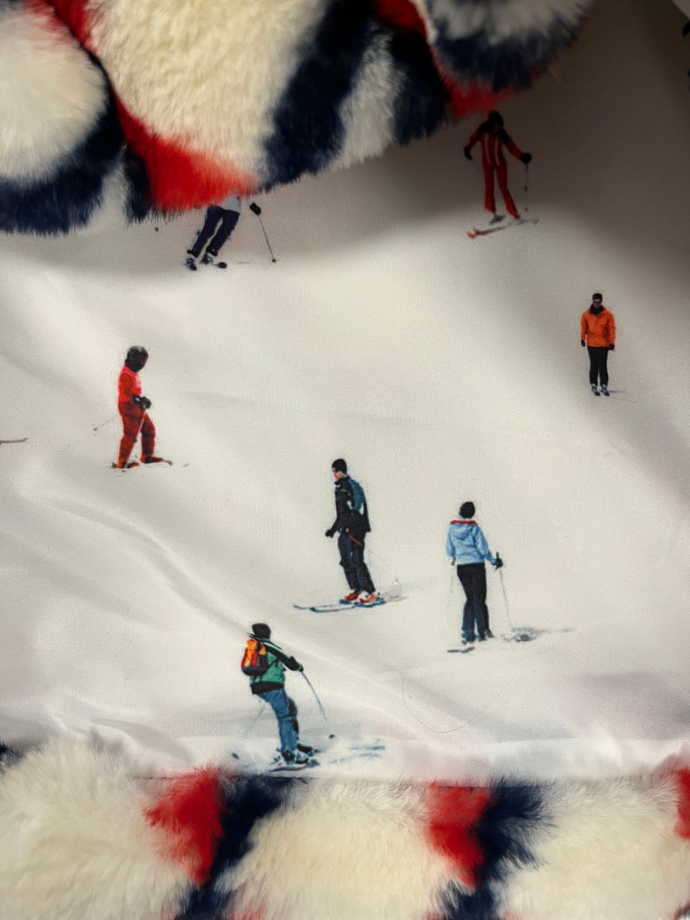 Ein unverzichtbares Kleidungsstück für kaltes Wetter, das Komfort und Stil vereint. Dieser kurze Oversize-Hoodie ist aus weichem Kunstfell gefertigt und mit einem Skimotiv von Dede Johnston gefüttert, das für ein luxuriöses Finish sorgt. Mit dem Perfect Moment-Streifendetail auf dem Ärmelsaum.