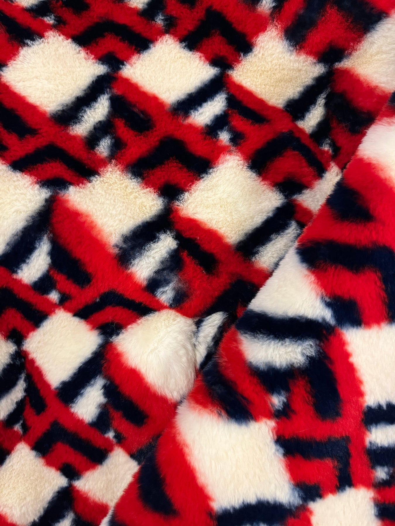 Jacke mit Kapuze in mehrfarbigen Kunstfell
