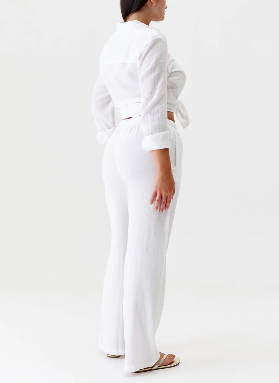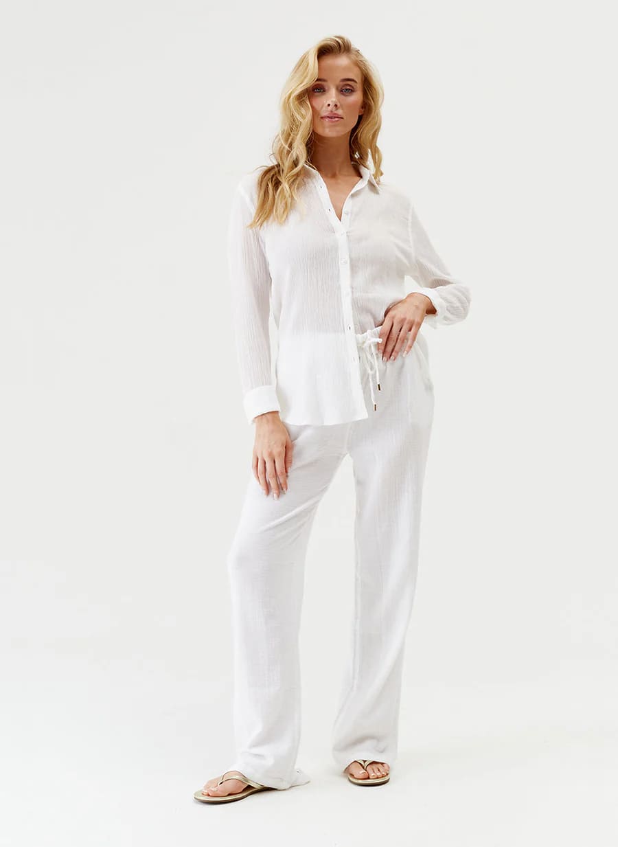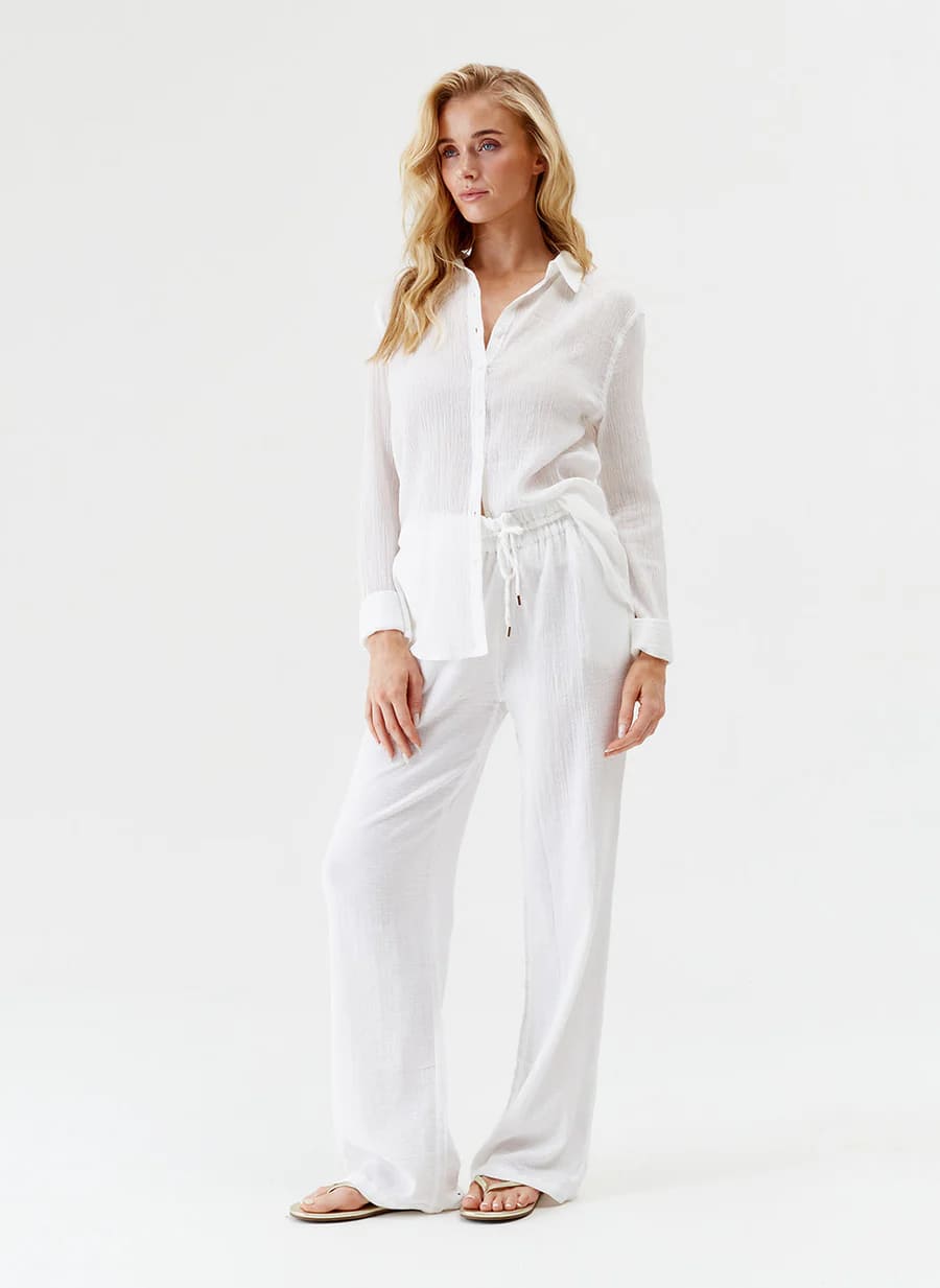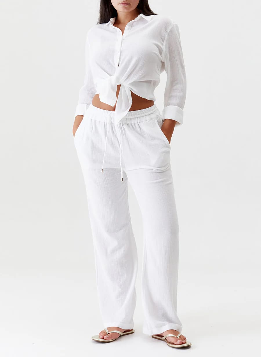 Die Krissy-Hose ist ein lässiges Basic für Ihre Urlaubsgarderobe und Ihr neues Lieblingsstück für den Sommer. Diese Hose aus der Core Collection von Melissa Odabash ist aus hochwertiger Baumwollgaze gefertigt und mit ihrer weiten, geraden Passform perfekt dafür geeignet, eine schmeichelhafte Silhouette zu kreieren und Sie gleichzeitig kühl zu halten. Sie verfügt über einen Kordelzug in der Taille für zusätzlichen Komfort und ist mit luxuriösen goldenen Kordelenden mit Markenlogo versehen. Die perfekte Balance zwischen elegant und lässig.