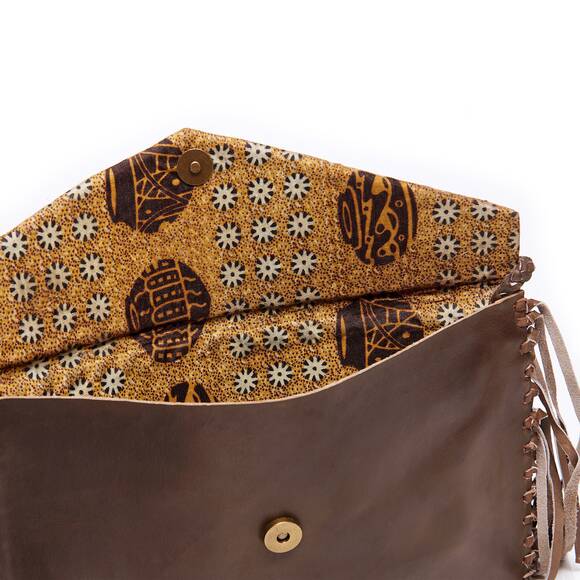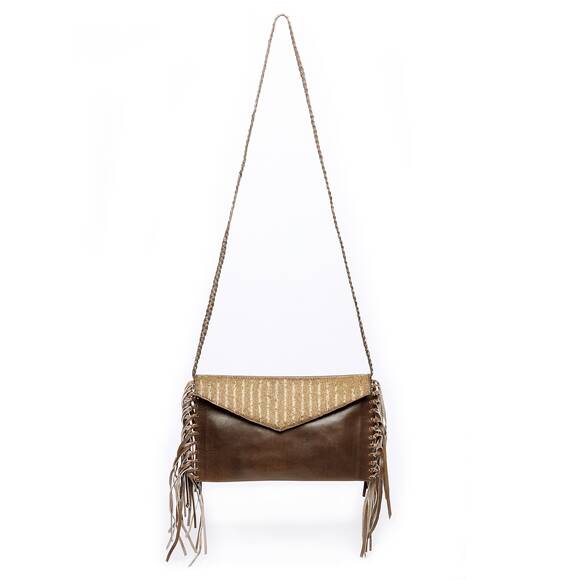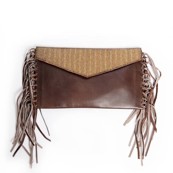 Brown fringed clutch bag from Laid Back London.
