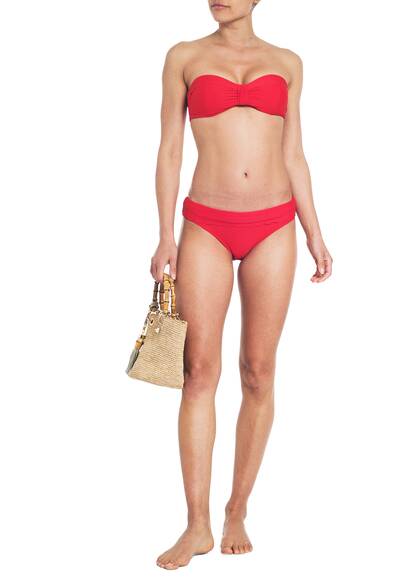 Der Bandeau-Bikini der britischen Designerin Heidi Klein ist eine stilvolle und vielseitige Wahl für den Sommer. Mit seinem schlichten, eleganten Design lässt sich der Bikini sowohl als Bandeau ohne Träger tragen oder mit den optionalen Trägern für zusätzlichen Halt und Komfort. Der hochwertige Stoff sorgt für eine angenehme Passform und eine schmeichelhafte Silhouette, während die dezente Farbe dem Bikini einen zeitlosen, luxuriösen Look verleiht. Perfekt für den Strand oder den Pool – dieser Bikini kombiniert Funktionalität mit einem modischen Statement.
